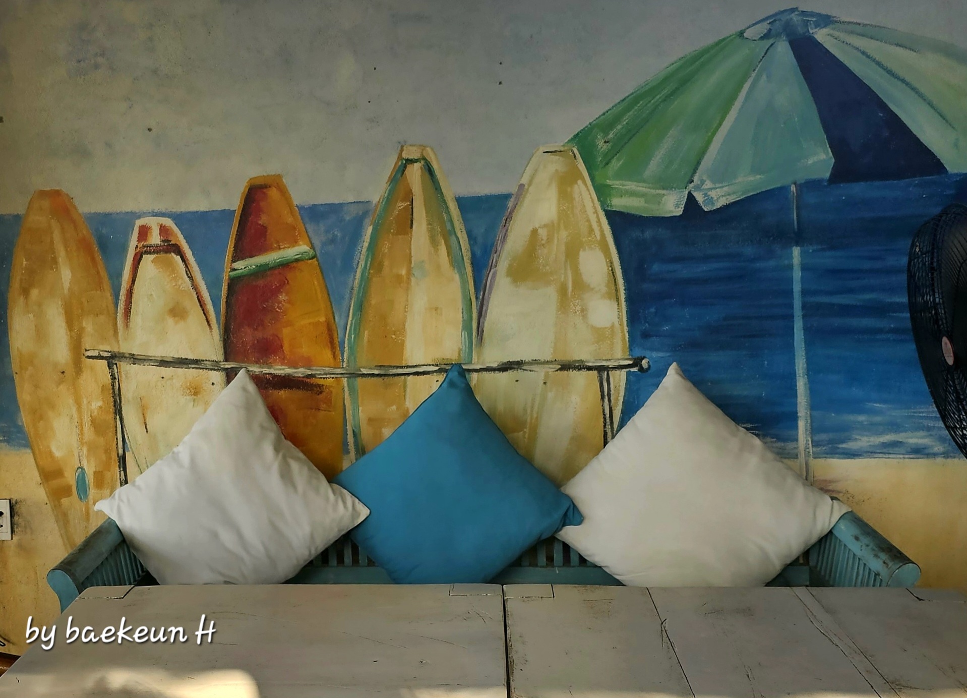 안방비치의 6월 날씨는 화창했지만 바닷바람이 세고 수영할 수 있는 구역을 정해두고 있었다.